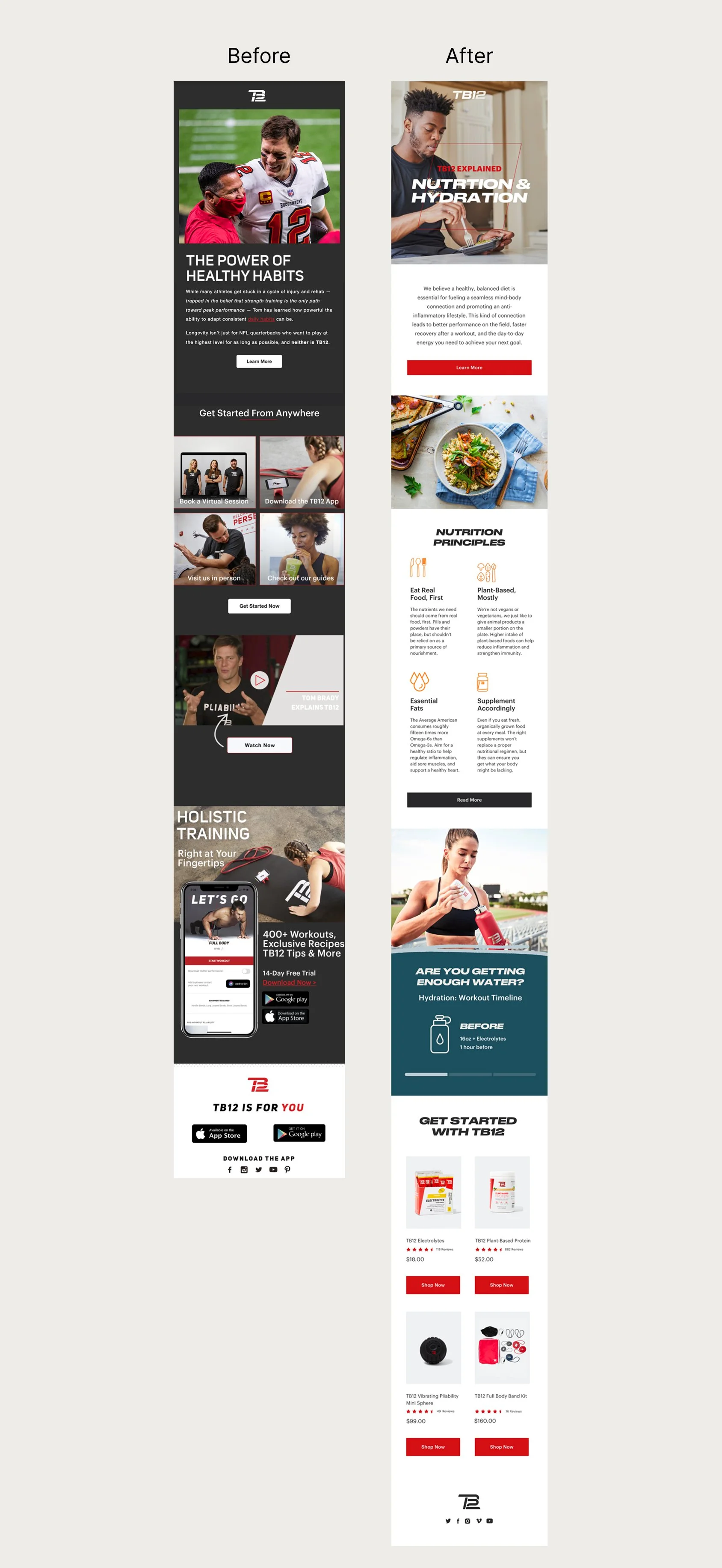 TB12 wanted to shift their image from being a “celebrity lifestyle brand” centered around Tom, to a proven, integrative approach to health and wellness. With that shift came new brand guidelines and a focus on educational content around their performance and recovery methods.